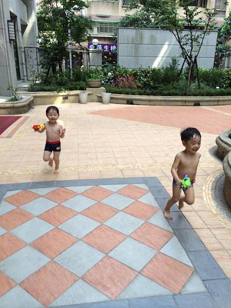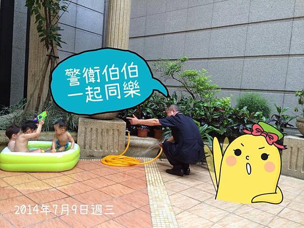 而且...還有熱情的 警衛伯伯 一起加入噴水戰局