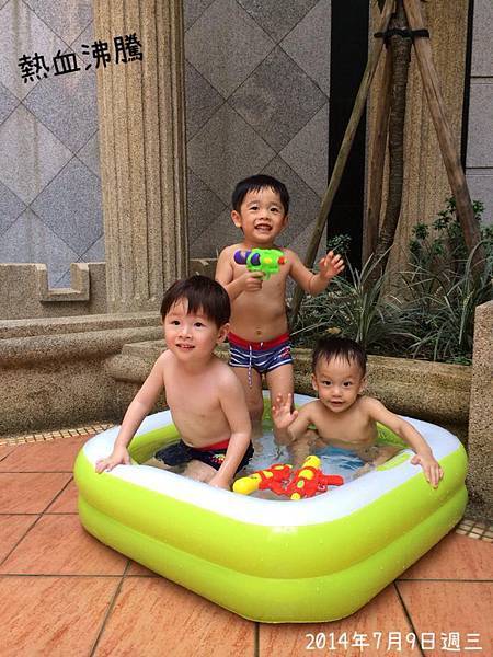 這.....根本 是 一人泳池 沒錯 是一人用的 硬是 擠了三個小童