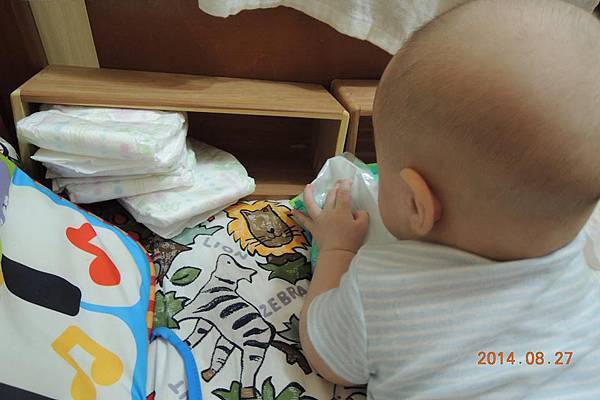 還不會爬的瑞瑞 在嬰兒床裡 利用 旋轉 的方式